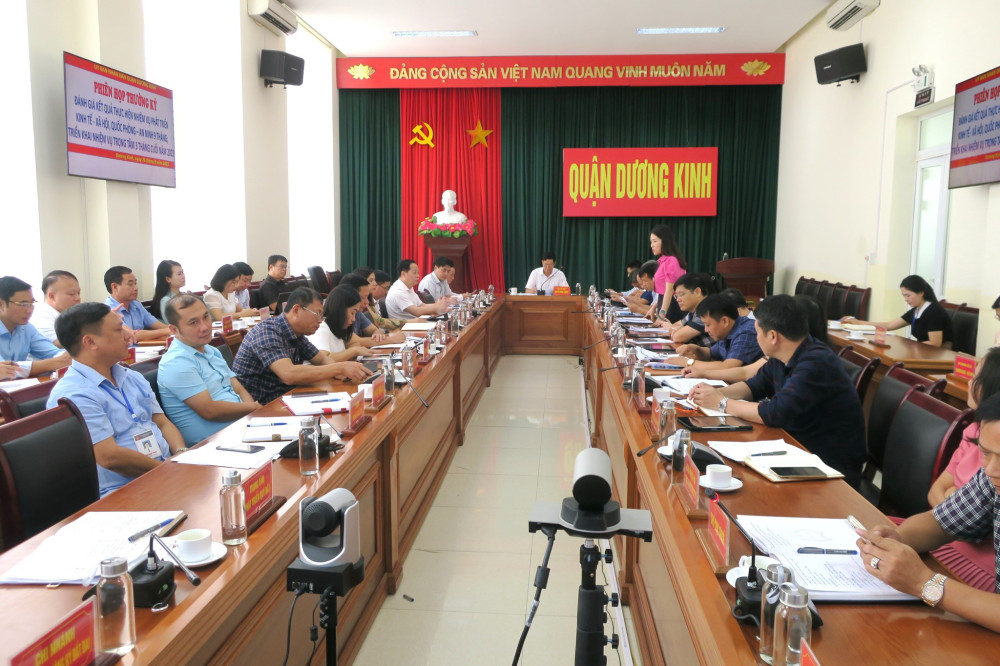 Sáng 26/9, UBND quận Dương Kinh tổ chức phiên họp thường kỳ để đánh giá kết quả thực hiện nhiệm vụ phát triển kinh tế-xã hội, quốc phòng-an ninh 9 tháng; triển khai nhiệm vụ trọng tâm 3 tháng cuối năm 2023. Đồng chí Nguyễn Minh Phương, Chủ tịch UBND quận chủ trì phiên họp.
