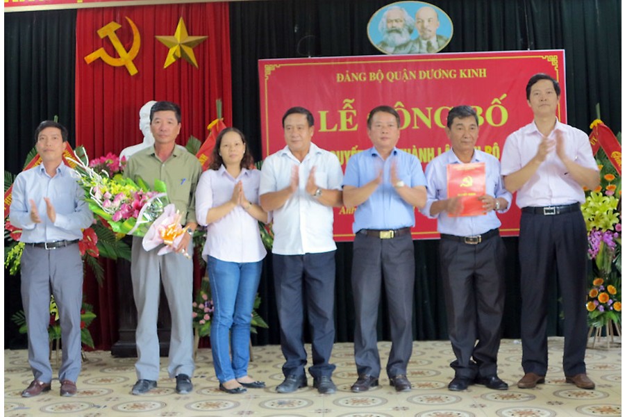 Chiều 31-10, Đảng ủy phường Anh Dũng, quận Dương Kinh tổ chức công bố quyết định thành lập Chi bộ Công ty TNHH xây dựng và vận tải Hoàng Trường.