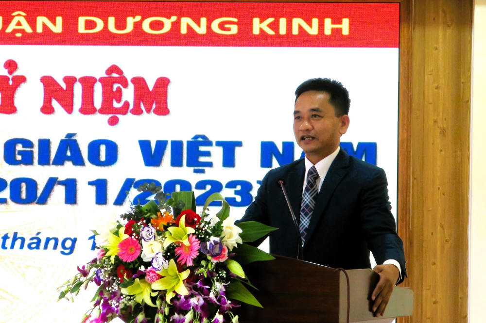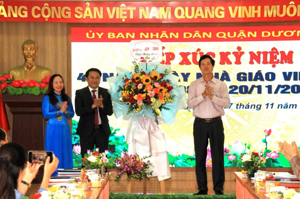 Phát biểu tại Hội nghị, đồng chí Nguyễn Trí Nhân, Phó Chủ tịch UBND quận thay mặt các đồng chí lãnh đạo Quận ủy, HĐND, UBND, Ủy ban MTTQ quận ghi nhận và nhiệt liệt biểu dương những thành tích mà ngành giáo dục quận đã đạt được trong thời gian qua; đồng thời gửi tới các thầy giáo, cô giáo, cán bộ, nhân viên ngành giáo dục những lời chúc tốt đẹp nhất.