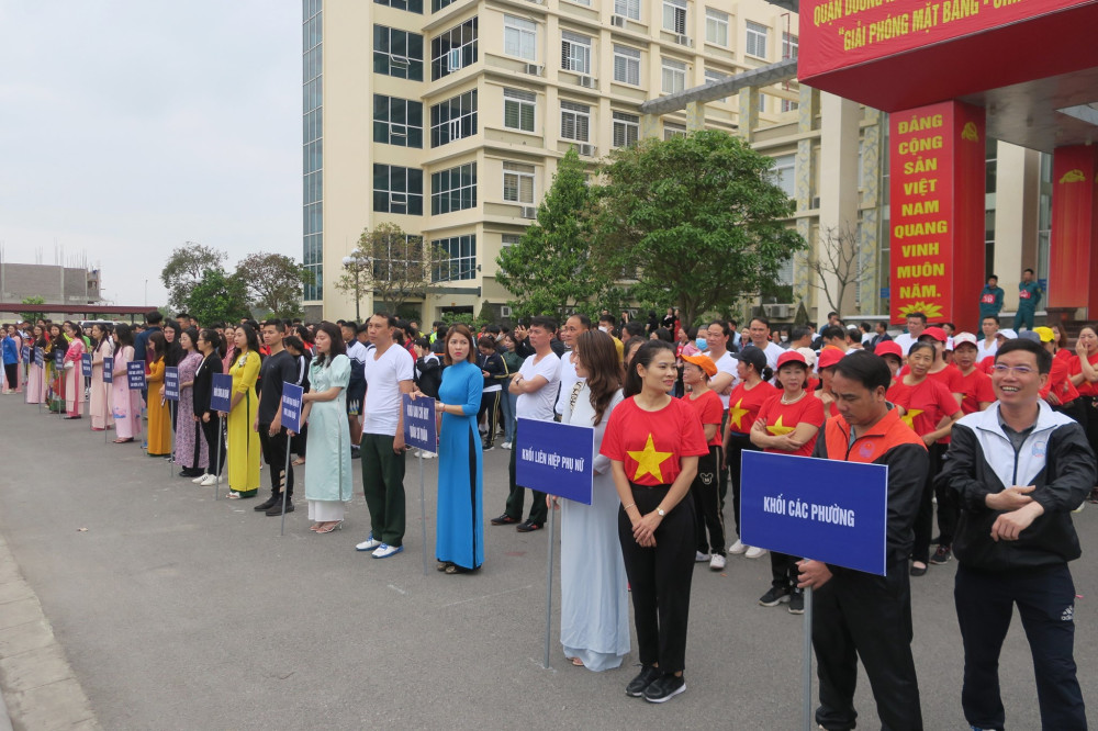 Tham gia Ngày chạy Olympic quận Dương Kinh năm nay có 21 khối với hơn 300 cán bộ, công chức, viên chức, người lao động tại các phòng, ban, đơn vị; các cơ quan khối quản, lực lượng vũ trang, đoàn thể, học sinh và nhân dân trong toàn quận.