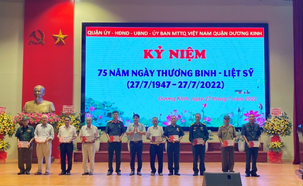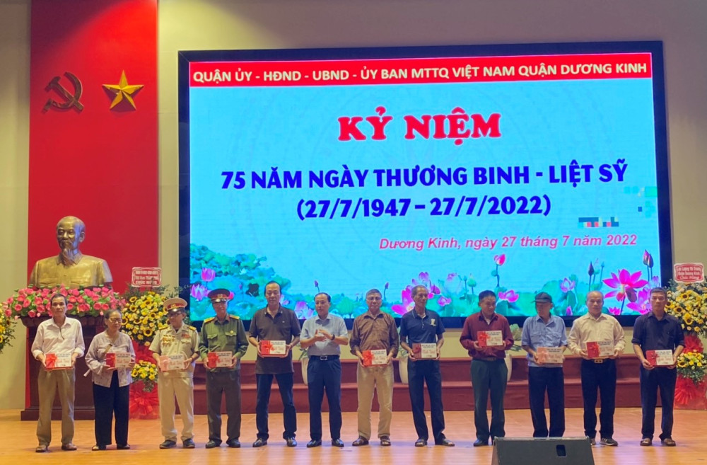 Sáng 27/7, trong không khí trang trọng, Quận ủy-HĐND-UBND-Ủy ban MTTQ Việt Nam quận Dương Kinh tổ chức kỷ niệm 75 năm Ngày Thương binh Liệt sỹ (27/7/1947-27/7/2022).