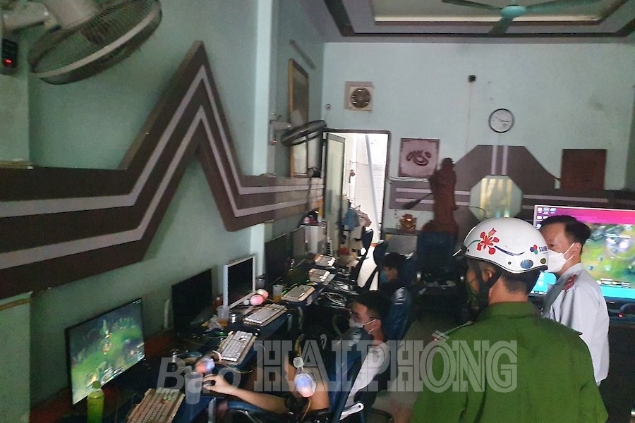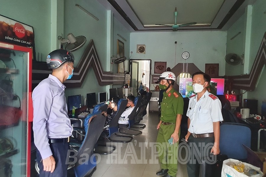 Khoảng 10 giờ 20 phút ngày 18/8, Tổ kiểm tra liên ngành số 1 xử lý các vi phạm hành chính về phòng, chống dịch bệnh COVID-19 phối hợp UBND phường Vĩnh Niệm (quận Lê Chân) kiểm tra quán game tại số 6/20/15 phố Khúc Thừa Dụ.