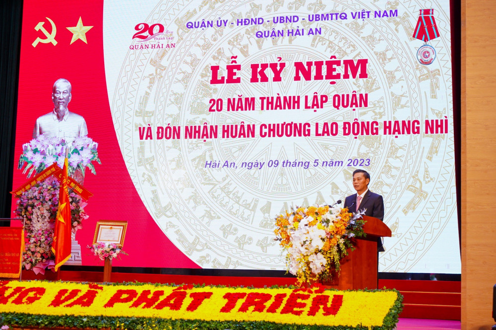 Phát biểu tại Lễ Kỷ niệm, thay mặt lãnh đạo thành phố, Chủ tịch UBND thành phố Nguyễn Văn Tùng biểu dương và ghi nhận những kết quả to lớn mà Đảng bộ, chính quyền, Quân và dân quận Hải An đã đạt được trong 20 năm qua với những đột phá trên nhiều lĩnh vực, từ công tác xây dựng Đảng, xây dựng cơ sở hạ tầng cho đến phát triển kinh tế xã hội với tốc độ tăng trưởng kinh tế cao.