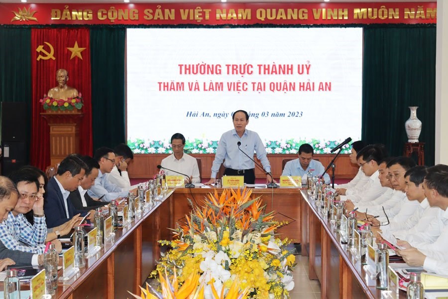 Nhấn mạnh phát biểu tại cuộc làm việc, Chủ tịch UBND thành phố Nguyễn Văn Tùng đánh giá công tác xây dựng Đảng, xây dựng hệ thống chính trị, vận động nhân dân trên địa bàn quận thời gian qua được chú trọng và có nhiều đổi mới, đạt kết quả toàn diện trên các mặt. Chủ tịch UBND thành phố nêu rõ là địa phương mới thành lập do vậy diện tích đất quản lý của quận Hải An còn khá lớn so với các địa phương khác, mặt khác hiếm có địa phương nào hội tụ đủ 5 phương thức vận tải như Hải An, hiện quận còn nhiều dư địa để phát triển kinh tế biển, công nghiệp và dịch vụ logistics…
