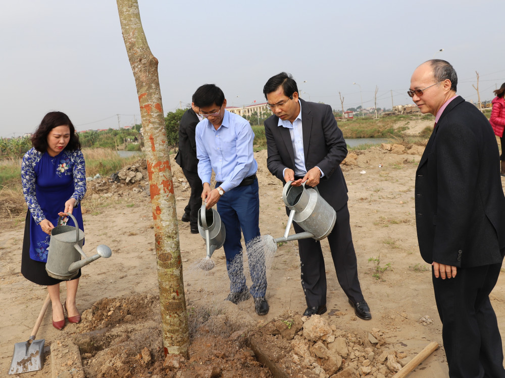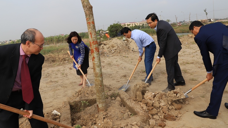 Các đại biểu tham gia trồng cây trên tuyến đường mới của Quận Hải An