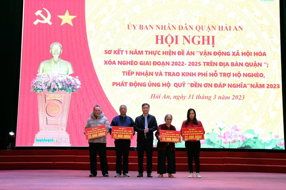 Tại Hội nghị đã biểu dương, khen thưởng các đơn vị và tập thể có nhiều đóng góp trong công tác xóa nghèo trên địa bàn quận năm 2022. Phát động và tiếp nhận ủng hộ xã hội hóa xóa nghèo giai đoạn 2022-2025; vận động ủng hộ Quỹ Đền ơn đáp nghĩa năm 2023; và trao kinh phí hỗ trợ xây mới, sửa chữa nhà cho gia đình người có công nhân Kỷ niệm 20 năm Ngày thành lập quận Hải An.