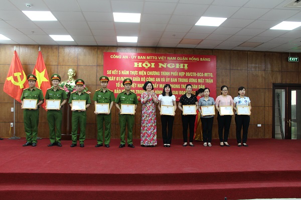 Tại hội nghị 20 lượt tập thể, cá nhân có thành tích xuất sắc trong thực hiện Chương trình phối hợp số 09 giữa Bộ Công an và Ủy ban TW MTTQ Việt Nam được biểu dương, khen thưởng.