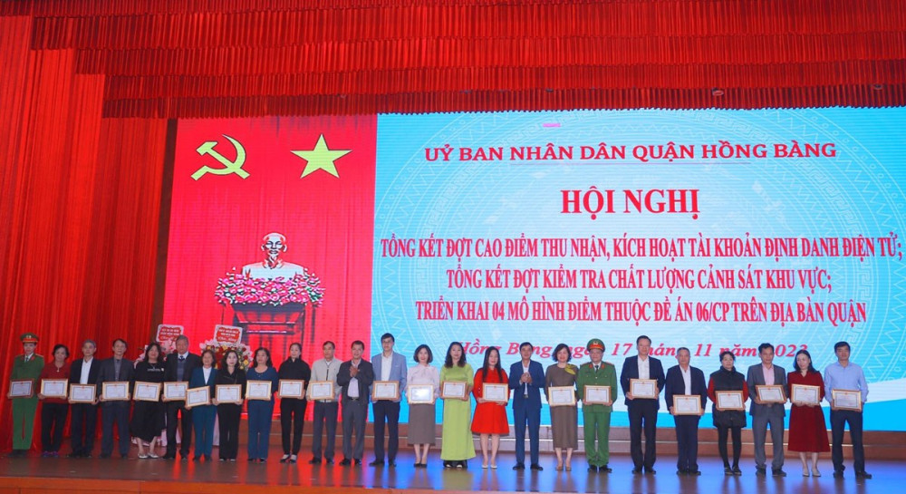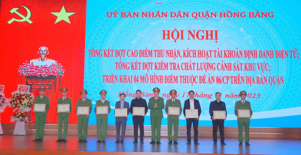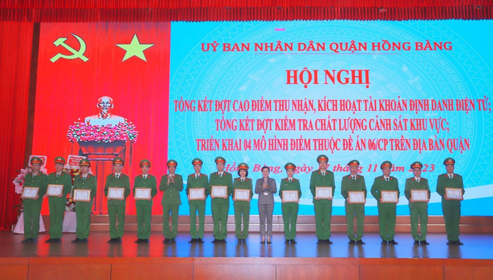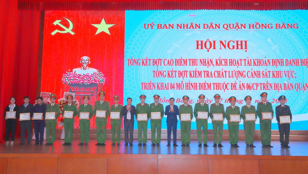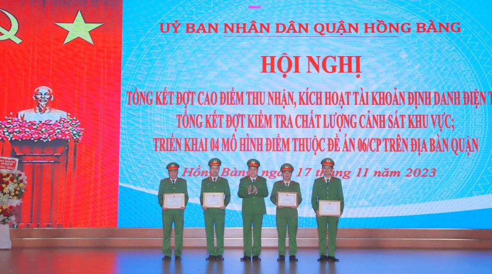 Ghi nhận đóng góp của tập thể, cá nhân trong thực hiện đợt cao điểm thu nhận, kích hoạt tài khoản định danh điện tử, quận Hồng Bàng có 6 tập thể và 5 cá nhân được Chủ tịch UBND thành phố tặng Bằng khen; Giám đốc Công an thành phố khen thưởng 2 tập thể và 2 cá nhân. UBND quận Hồng Bàng biểu dương 38 tập thể, cá nhân trong công tác thu nhận, kích hoạt định danh điện tử và 3 tập thể, 14 cá nhân có thành tích trong đợt tổng kết kiểm tra chất lượng cảnh sát khu vực.