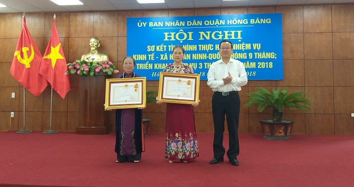 Tại hội nghị, hai gia đình đã vinh dự được nhận Huân chương Độc lập hạng 3 của Chủ tịch nước; đồng chí Tô Đình Đại, Chủ tịch UBND quận Hồng Bàng và đồng chí Hoàng Thị Nhẫn, Phó Chủ tịch Thường trực UBND quận Hồng Bàng nhận Kỷ niệm chương Vì sự nghiệp Lao động – Thương binh và xã hội; 4 cá nhân được nhận bằng khen của Chủ tịch UBND thành phố.