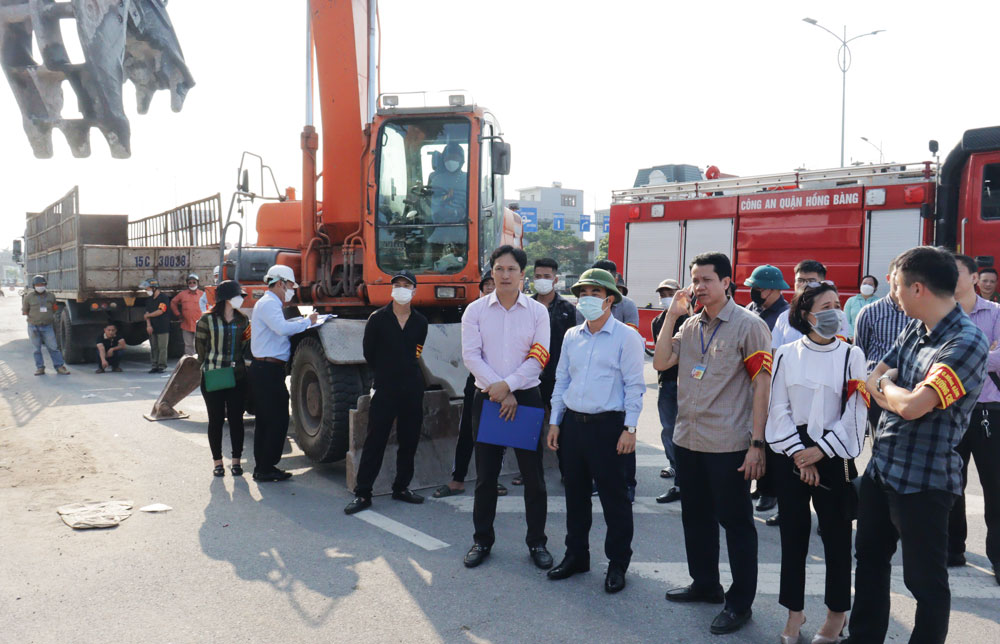 Căn cứ quy định pháp luật, bảo đảm tiến độ dự án, UBND quận Hồng Bàng ban hành các quyết định về việc thu hồi đất đối với các hộ dân chưa chấp hành theo quy định. Công tác cưỡng chế được triển khai theo đúng kế hoạch, tiến độ đề ra, tuyệt đối an toàn và đúng quy định của pháp luật.