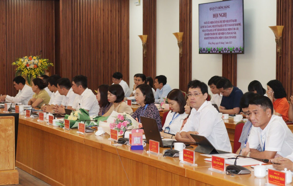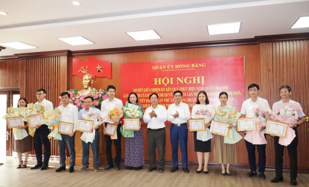 Tại Hội nghị, Chủ tịch UBND quận Hồng Bàng đã Quyết định tặng Giấy khen cho 10 tập thể có thành tích xuất sắc trong 3 năm thực hiện Nghị quyết Đại hội XIII của Đảng, Nghị quyết Đại hội XVI Đảng bộ thành phố, Nghị quyết Đại hội XXIII Đảng bộ quận, nhiệm kỳ 2020-2025.