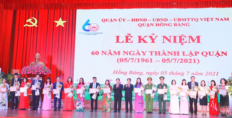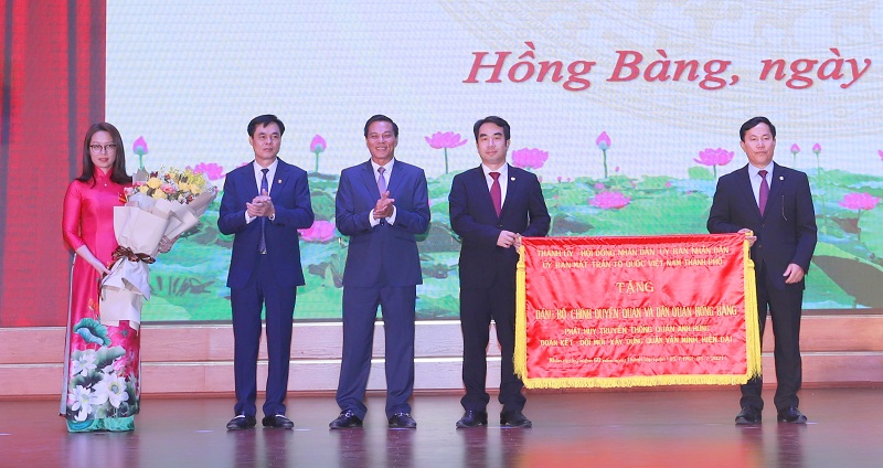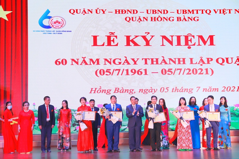 Nhân dịp này, Thành ủy-HĐND-UBND-UBMTTQ Thành phố tăng quận bức trướng với dòng chữ: “Phát huy truyền thống quận anh hùng, đoàn kết, đổi mới, xây dựng quận văn minh, hiện đại”. Chủ tịch UBND thành phố tặng bằng khen 5 tập thể và 10 cá nhân; Chủ tịch UBND quận Hồng Bàng tặng giấy khen 20 tập thể và 40 cá nhân có thành tích xuất sắc, đóng góp vào sự nghiệp xây dựng và phát triển quận.