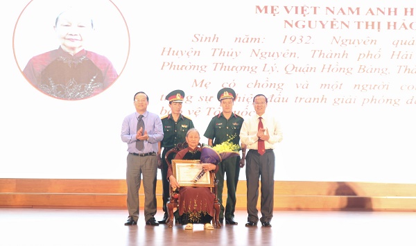 Dịp này, quận Hồng Bàng vinh dự được Chủ tịch nước ký quyết định truy tặng danh hiệu “Bà Mẹ Việt Nam Anh hùng” cho Mẹ Nguyễn Thị Hảo, sinh 1932, ở xã Kiền Bái huyện Thủy Nguyên, trú quán tại phường Thượng Lý, quận Hồng Bàng, thành phố Hải Phòng. Mẹ có chồng và một người con trai đã hy sinh trong sự nghiệp đấu tranh giải phóng dân tộc, xây dựng và bảo vệ Tổ quốc.