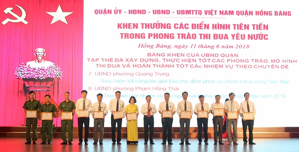 Quận Hồng Bàng đã tổ chức khen thưởng các điển hình tiên tiến trong phong trào thi đua yêu nước: 18 tập thể, 29 cá nhân được UBND thành phố tặng Bằng khen; 151 tập thể, 299 cá nhân được UBND quận tặng Danh hiệu, giấy khen vì có thành tích trong thực hiện nhiệm vụ.