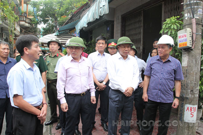 Kiểm tra tại các nhà trên đường Lý Thường Kiệt và các khu vực nhà đang xây dựng ven đường sông Tam Bạc, Phó Chủ tịch Thường trực UBND thành phố lưu ý chính quyền địa phương nhắc nhở bà con nhân dân có biện pháp di chuyển khi không đảm bảo an toàn; chính quyền quận, phường cần kiểm tra các biện pháp phòng, chống bão nói chung; với các công trình đang xây dựng phải đảm bảo tuyệt đối an toàn, tránh tình trạng trang thiết bị trên cao bay, rơi xuống làm ảnh hưởng đến tính mạng người dân.