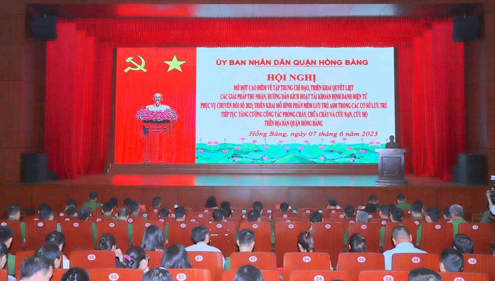 Chiều 7/6, UBND quận Hồng Bàng tổ chức Hội nghị mở đợt cao điểm về tập trung chỉ đạo, triển khai quyết liệt các giải pháp thu nhận, hướng dẫn kích hoạt tài khoản định danh điện tử phục vụ Chuyển đổi số năm 2023; triển khai mô hình phần mềm lưu trú ASM trong các cơ sở lưu trú và tiếp tục tăng cường công tác phòng cháy, chữa cháy và cứu nạn cứu hộ trên địa bàn quận. Đồng chí Lê Thị Vân, Phó Chủ tịch thường trực UBND quận, Trưởng Ban Chỉ đạo 799 quận Hồng Bàng chủ trì Hội nghị.