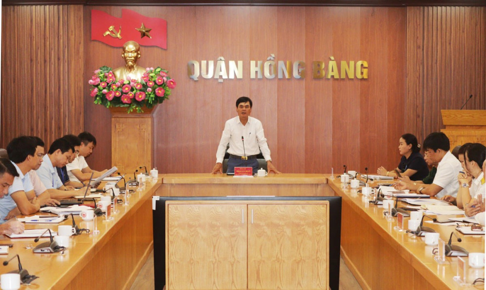Sáng 26/9, UBND quận Hồng Bàng tổ chức hội nghị sơ kết tình hình thực hiện nhiệm vụ kinh tế-xã hội, quốc phòng-an ninh tháng 9 và 9 tháng đầu năm; triển khai nhiệm vụ trọng tâm 3 tháng cuối năm 2023. Đồng chí Phạm Văn Đoan, Phó Bí thư Quận ủy, Chủ tịch UBND quận chủ trì hội nghị.