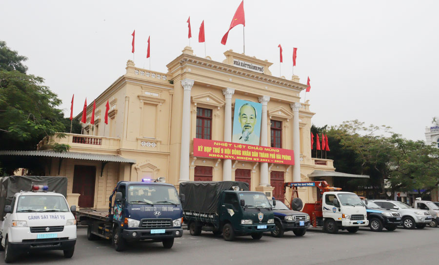 Sáng 9/12, tại Quảng trường Nhà hát thành phố, UBND quận Hồng Bàng tổ chức ra quân kiểm tra, xử lý đảm bảo trật tự an toàn giao thông, trật tự đường hè tại các tuyến đường: Đinh Tiên Hoàng, Hoàng Văn Thụ, Minh Khai, Quang Trung, Trần Hưng Đạo, Điện Biên Phủ, Dải trung tâm thành phố trên địa bàn Quận Hồng Bàng.