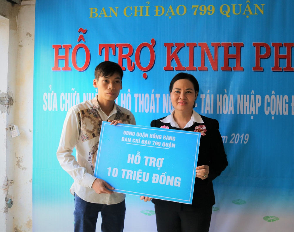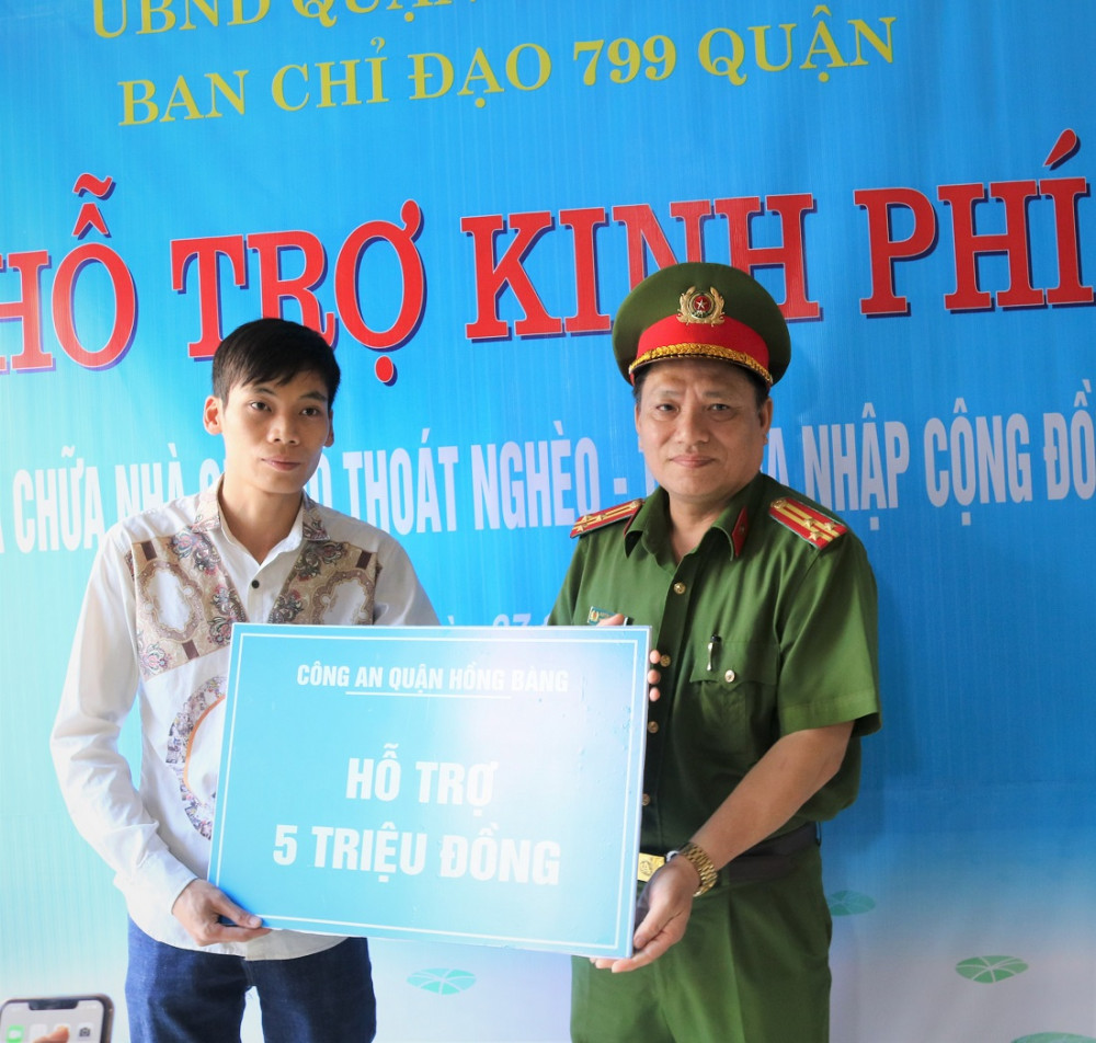 Sáng 27-11, Ban chỉ đạo 799 quận Hồng Bàng, Công an quận Hồng Bàng và phường Thượng Lý đã trao kinh phí hỗ trợ gia đình ông Ngô Văn Hương (ở số nhà 40/185 Hùng Duệ Vương, phường Thượng Lý, quận Hồng Bàng) sửa chữa lại nhà, giúp hộ thoát nghèo, con trai ông tái hòa nhập cộng đồng.