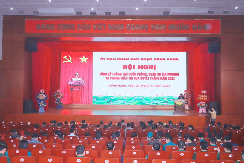 Sáng 23/11, UBND quận Hồng Bàng tổ chức Hội nghị tổng kết công tác quốc phòng-quân sự địa phương và phong trào thi đua quyết thắng năm 2023.
