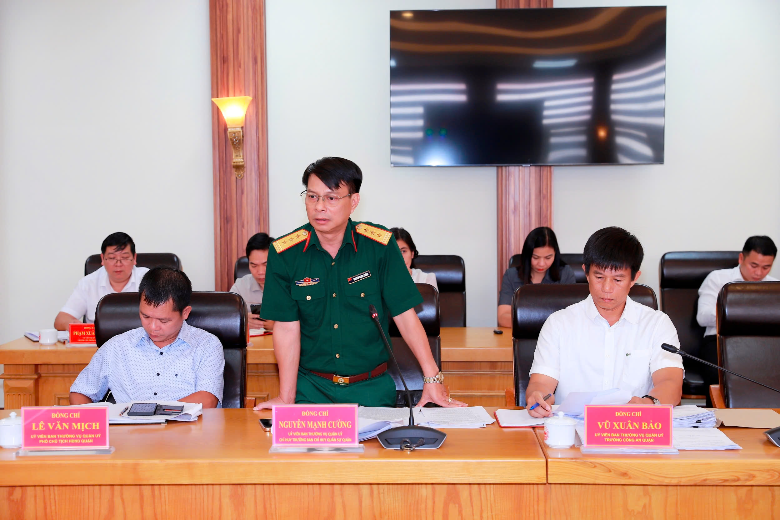 Đồng chí Bí thư Quận ủy đề nghị cần tập trung cao độ cho Đại hội Đảng nhiệm kỳ tới, trong đó, đề nghị các Tiểu ban, các Tổ giúp việc khẩn trương xây dựng kế hoạch triển khai các nhiệm vụ, nhất là tập trung cao công tác chuẩn bị văn kiện Đại hội; tiếp tục rà soát công tác quy hoạch cán bộ để chuẩn bị cho công tác nhân sự Đại hội; rà soát các chỉ tiêu nghị quyết năm 2024 và chỉ tiêu nghị quyết của cả nhiệm kỳ; tập trung cao chuẩn bị các thủ tục, đảm bảo khởi công đúng hạn 3 công trình chào mừng Đại hội Đảng bộ quận lần thứ XXIV. Cùng với đó, nghiên cứu triển khai xây dựng hồ sơ Quận Di sản, coi đây là nhiệm vụ trọng tâm tiếp theo sau khi nhiệm vụ trọng tâm về công tác sắp xếp, mở rộng địa giới hành chính cơ bản đã hoàn thành…