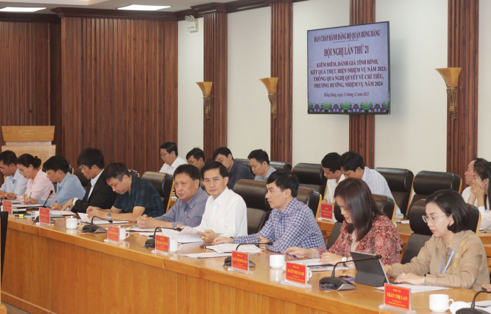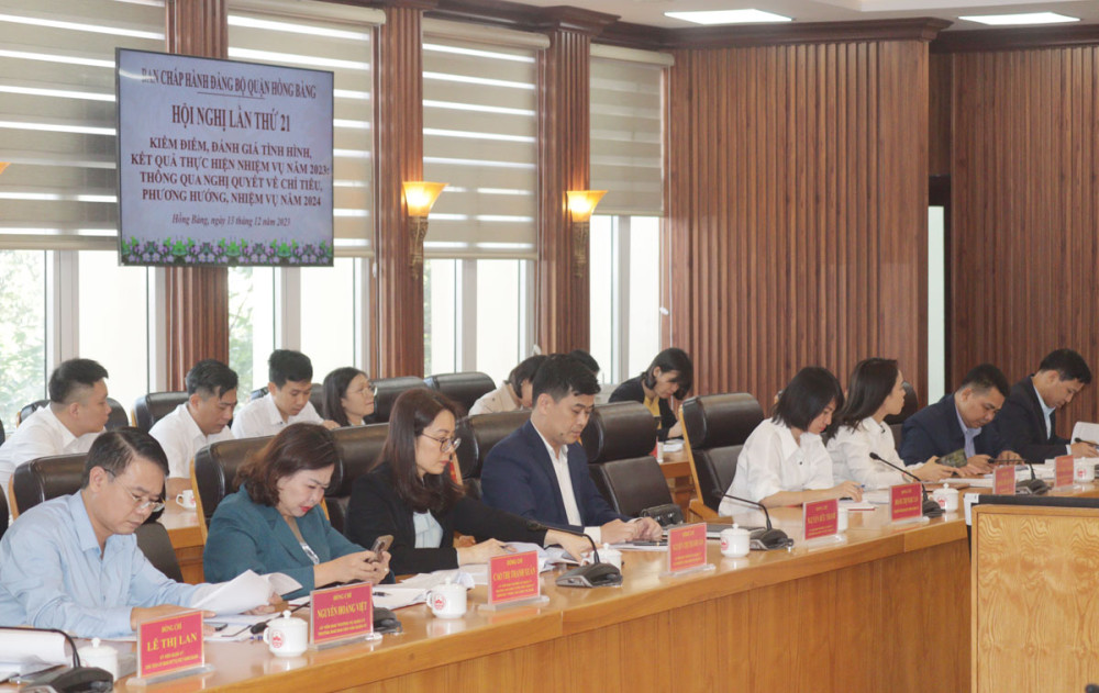 Sáng 13/12, Quận ủy Hồng Bàng tổ chức Hội nghị Ban Chấp hành Đảng bộ quận lần thứ 21 kiểm điểm, đánh giá tình hình, kết quả thực hiện nhiệm vụ năm 2023; thông qua nghị quyết về chỉ tiêu, phương hướng, nhiệm vụ năm 2024.