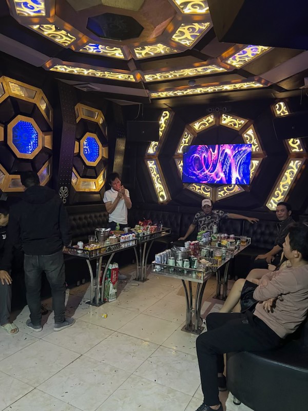 Cụ thể, vào 23h12 ngày 16/1, tổ công tác của đơn vị phối hợp với Đội Cảnh sát QLHC về TTXH Công an huyện Thuỷ Nguyên, tiến hành kiểm tra việc chấp hành quy định, điều kiện về ANTT đối với cơ sở kinh doanh dịch vụ Karaoke Matxcơva, có địa chỉ tại thôn Khuông Lư, xã Ngũ Lão, Thủy Nguyên.