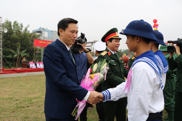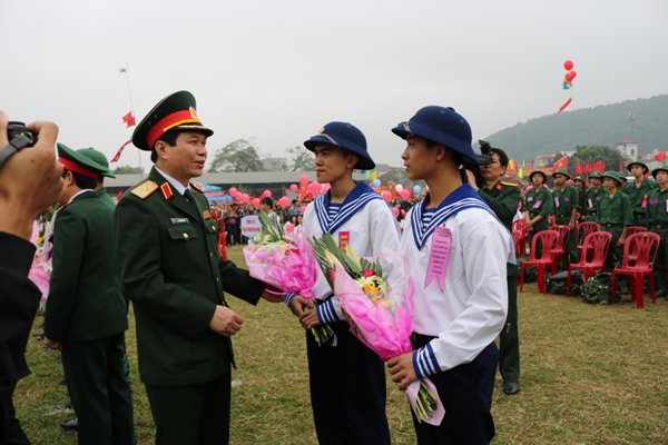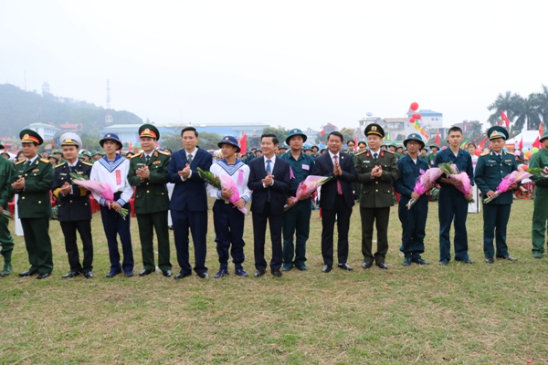 Các đại biểu tặng hoa, động viên tân binh lên đường nhập ngũ