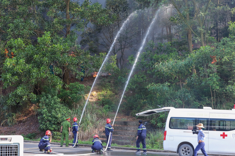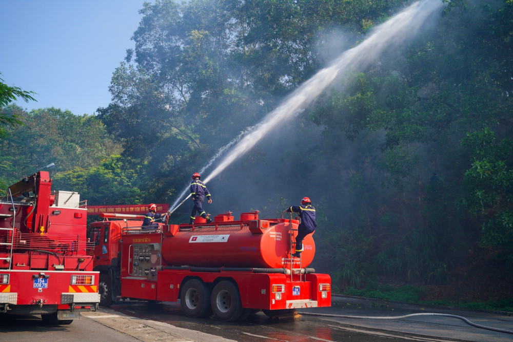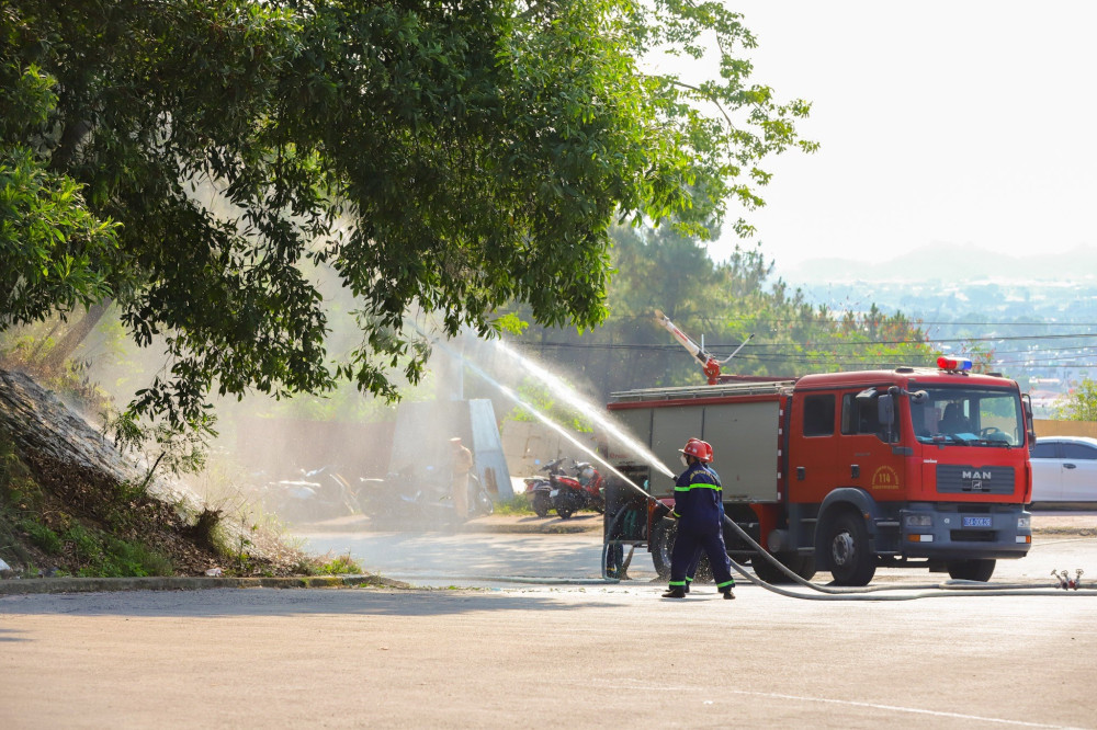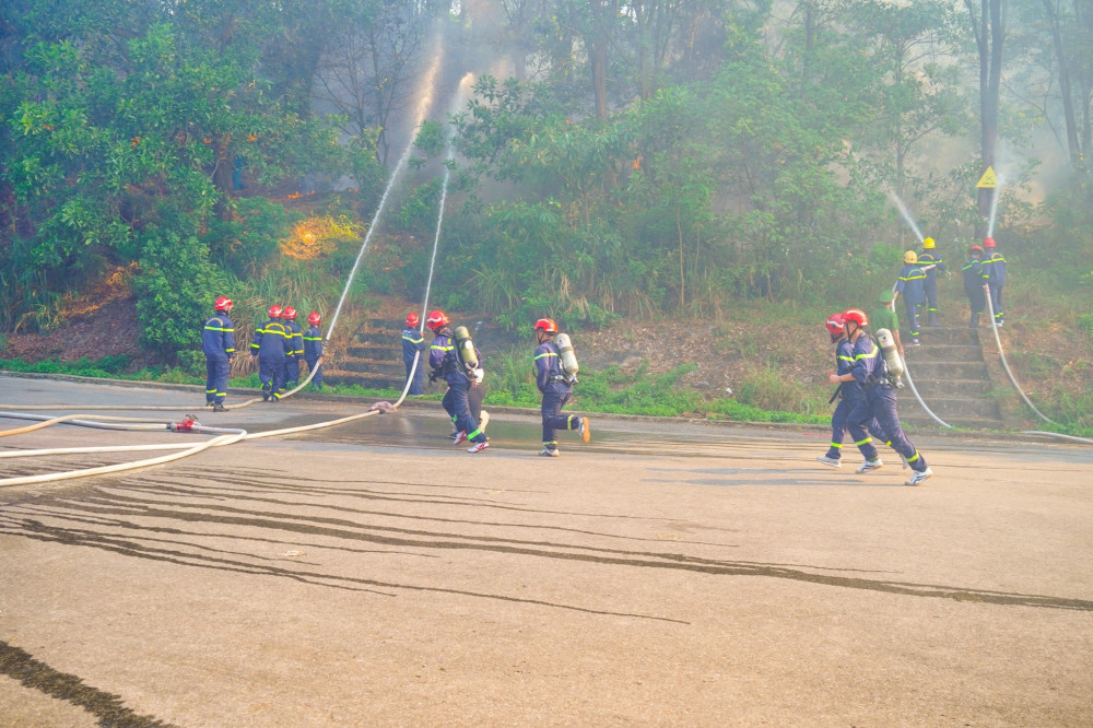 Cuộc diễn tập huy động 265 người thuộc nhiều đơn vị khác nhau cùng 03 xe chỉ huy, 4 xe chữa cháy, 01 xe cứu nạn, cứu hộ, 02 xe cứu thương, 04 máy bơm chữa cháy, 11 xe chở lực lượng phương tiện, xe chuyên dụng phối hợp triển khai chữa cháy, ngăn chặn cháy lan.