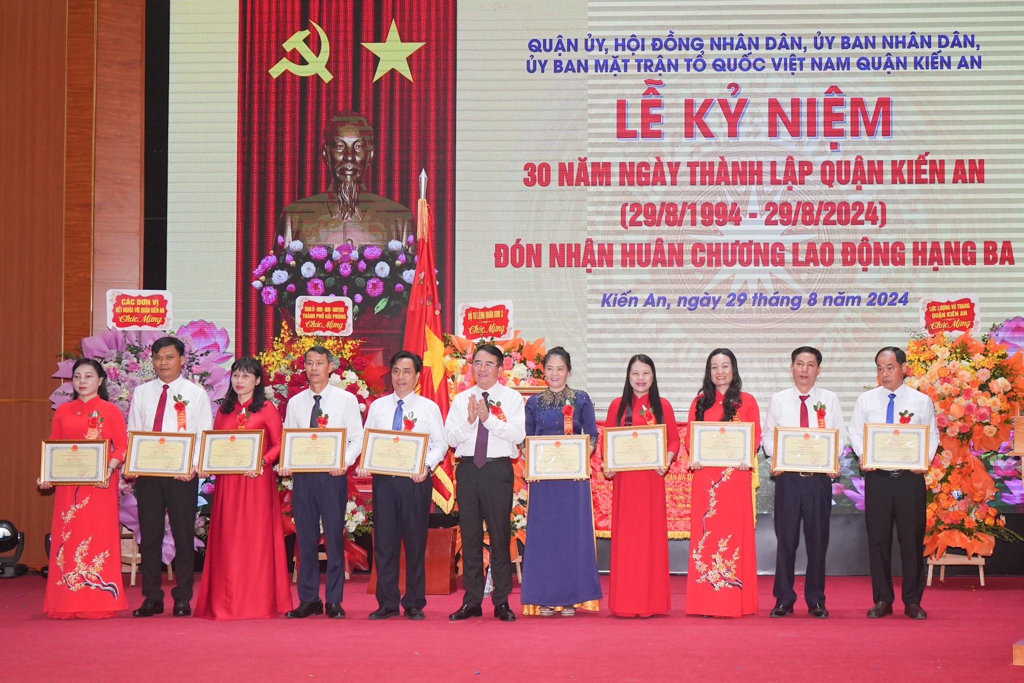 Nhân dịp này, quận Kiến An vinh dự được Chủ tịch Nước Cộng hòa xã hội chủ nghĩa Việt Nam tặng thưởng Huân chương Lao động hạng Ba; Thủ tướng Chính phủ tặng Bằng khen cho 03 cá nhân; Ban Chấp hành Đảng bộ thành phố tặng Bức trướng cho Đảng bộ, chính quyền, quân và dân quận Kiến An với nội dung “Phát huy truyền thống anh hùng lực lượng vũ trang nhân dân; Đoàn kết, đổi mới, xây dựng quận Kiến An phát triển bền vững, văn minh, hiện đại”; Chủ tịch UBND thành phố tặng Bằng khen cho 09 tập thể và 10 cá nhân đã có thành tích trong công tác, góp phần vào quá trình xây dựng và phát triển quận.