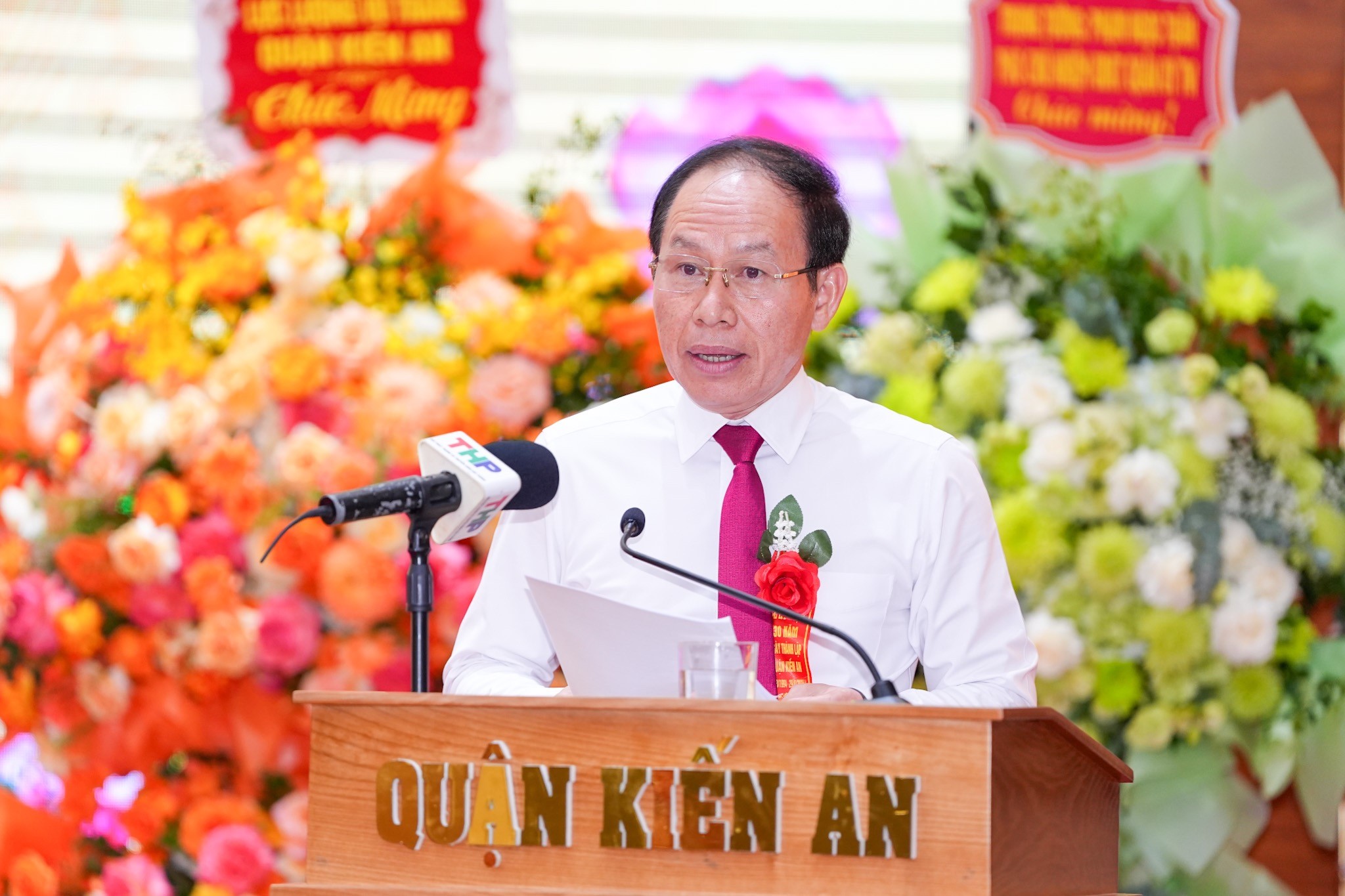 Phát biểu tại Lễ kỷ niệm, đồng chí Lê Tiến Châu, Bí thư Thành ủy, Trưởng Đoàn Đại biểu Quốc hội thành phố Hải Phòng biểu dương và chúc mừng những thành quả mà Đảng bộ, chính quyền và Nhân dân quận Kiến An đã đạt được trong suốt quá trình xây dựng và trưởng thành. Đồng chí Bí thư Thành ủy nhấn mạnh, Lễ Kỷ niệm 30 năm thành lập quận đúng vào thời điểm toàn Đảng bộ, chính quyền, quân và Nhân dân thành phố đang nỗ lực vượt qua khó khăn, thách thức, tích cực triển khai thực hiện Nghị quyết Đại hội 13 của Đảng, Nghị quyết 45 của Bộ Chính trị về xây dựng và phát triển thành phố Hải Phòng đến năm 2030, tầm nhìn đến năm 2045, Nghị quyết Đại hội 16 của Đảng bộ thành phố. Nhiệm vụ đặt ra rất to lớn và nặng nề, đòi hỏi phải có sự nỗ lực phấn đấu rất cao của toàn Đảng bộ, chính quyền, quân và Nhân dân thành phố nói chung, các địa phương nói riêng, trong đó có vai trò đóng góp của Đảng bộ, quân và Nhân dân quận Kiến An.