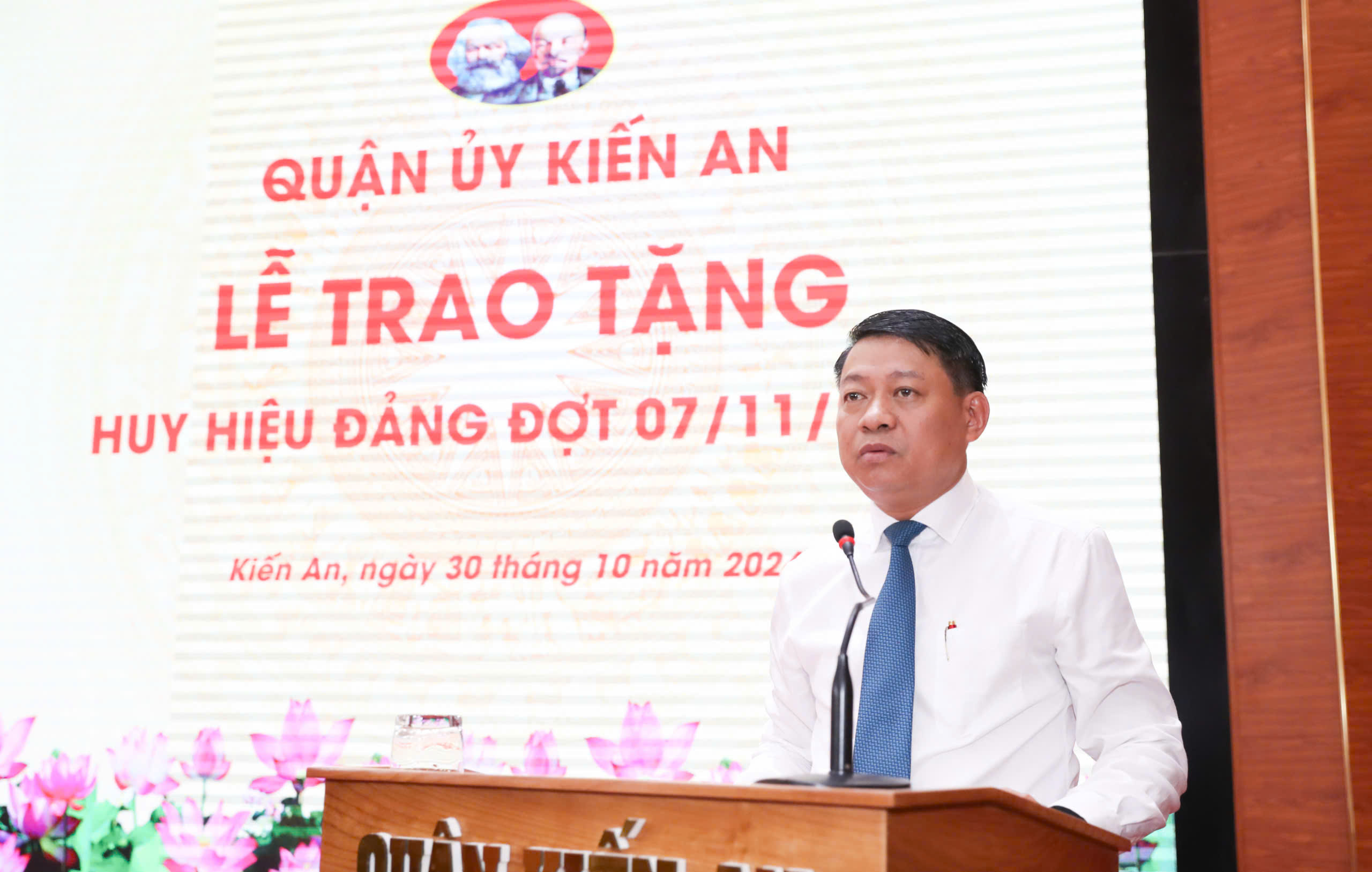 Sáng 30/10, Quận ủy Kiến An long trọng tổ chức Lễ trao Huy hiệu Đảng đợt 07/11/2024. Đồng chí Phạm Văn Khanh, Ủy viên Thành ủy, Bí thư Quận ủy, Chủ tịch HĐND quận Kiến An chủ trì Lễ trao Huy hiệu Đảng. Tới dự có đồng chí Lê Trí Vũ, Ủy viên Ban Thường vụ Thành ủy, Trưởng Ban Tổ chức Thành ủy.
