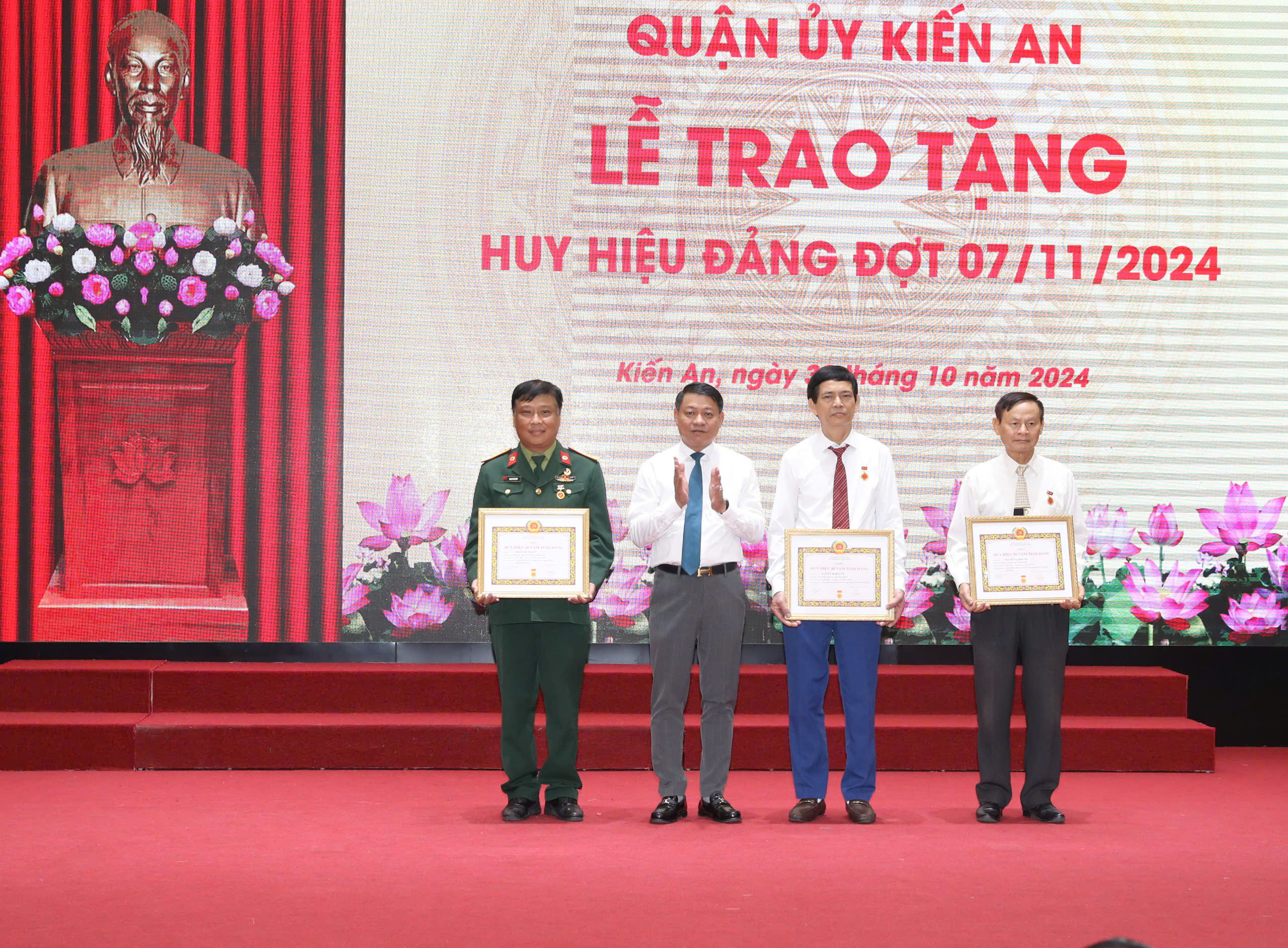 Trong đợt 07/11/2004, Quận ủy Kiến An có 21 đảng viên được trao tặng Huy hiệu Đảng. Trong đó, 01 đảng viên được tặng Huy hiệu 70 năm tuổi Đảng; 08 đảng viên được tặng Huy hiệu 60 năm tuổi Đảng; 09 đảng viên được tặng Huy hiệu 55 năm tuổi Đảng; 01 đảng viên được tặng Huy hiệu 50 năm tuổi Đảng; 01 đảng viên được trao Huy hiệu 30 năm tuổi Đảng và 01 đảng viên được tặng Huy hiệu 30 năm tuổi Đảng.