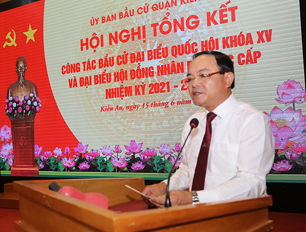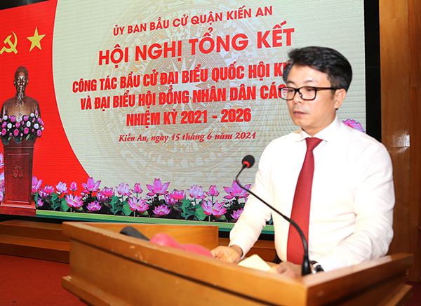 Phát biểu tại hội nghị, đồng chí Lê Trí Vũ, Ủy viên Ban Thường vụ Thành ủy, Trưởng ban Dân vận Thành ủy ghi nhận, đánh giá cao và chúc mừng quận Kiến An tổ chức thành công cuộc bầu cử. Quận tổ chức cuộc bầu cử trong điều kiện đặc biệt, tập trung cao trong phòng, chống dịch bệnh COVID-19. Công tác chuẩn bị cho cuộc bầu cử được quận chỉ đạo chặt chẽ, đúng quy định. Công tác tuyên truyền được thực hiện phong phú về nội dung, đa dạng về hình thức, với nhiều cách làm sáng tạo. Trang trí, khánh tiết tạo điểm nhấn đảm bảo mỹ quan. Công tác kiểm tra, giám sát được tăng cường. Các ngành, các địa phương có sự phối hợp tích cực, triển khai đồng bộ, đúng tiến độ, đúng kế hoạch chung và bảo đảm đúng quy trình, thủ tục theo luật định. Thành viên các tổ chức phụ trách bầu cử làm việc với tinh thần tích cực, trách nhiệm cao. Tình hình an ninh chính trị, trật tự an toàn xã hội, phòng chống dịch bệnh COVID-19 trước, trong và sau cuộc bầu cử được bảo đảm. Không có đơn thư, khiếu nại, tố cáo về bầu cử và danh sách người trúng cử.