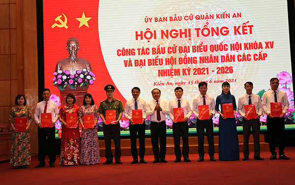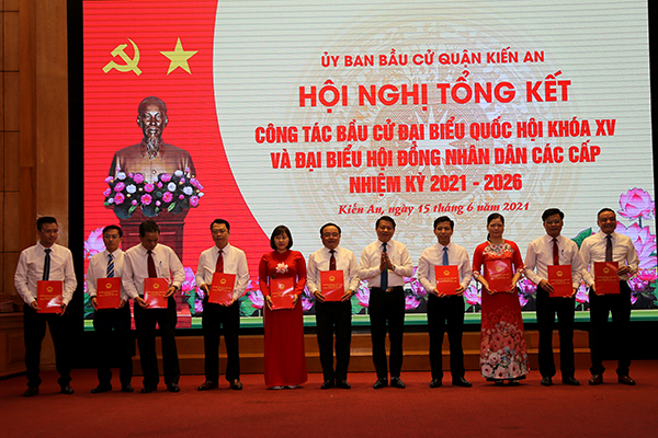 Tại hội nghị, các đại biểu trúng cử đại biểu HĐND quận Kiến An khóa V, nhiệm kỳ 2021-2026 được Ủy ban bầu cử quận trao giấy chứng nhận xác nhận tư cách đại biểu. Nhân dịp này, 21 tập thể, 74 cá nhân có thành tích xuất sắc trong công tác bầu cử đại biểu Quốc hội và HĐND các cấp nhiệm kỳ 2021-2026 được UBND quận biểu dương, khen thưởng.