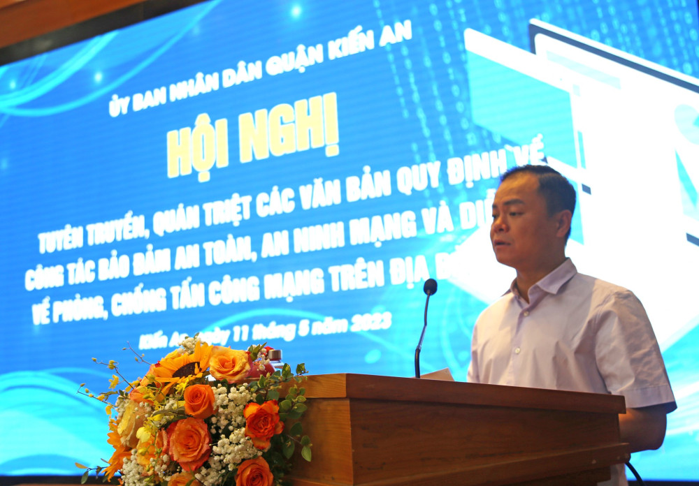 Phát biểu tại Hội nghị, đồng chí Nguyễn Phong Doanh, Phó Chủ tịch UBND quận Kiến An nhấn mạnh: Trước tình hình diễn biến phúc tạp khó lường của tội phạm an ninh mạng; thực hiện chỉ đạo của Thành ủy, UBND thành phố, Ban Thường vụ Quận ủy đã thành lập và đưa vào hoạt động Ban Chỉ đạo 35 để đấu tranh phản bác các quan điểm, luận điệu sai trái, thù địch chống phá Đảng, bảo vệ nền tảng tư tưởng của Đảng. UBND quận đã chỉ đạo kiện toàn Ban Bảo vệ bí mật Nhà nước, chỉ đạo các ngành tham mưu, đề xuất thành lập Tiểu ban và Tổ giúp việc Tiểu ban an toàn an ninh mạng. Đồng chí đề nghị cán bộ, công chức, viên chức tham dự Hội nghị nêu cao tinh thần trách nhiệm, tập trung theo dõi, thảo luận và trao đổi trực tiếp với Báo cáo viên và Chuyên gia về những khó khăn, vướng mắc để có thêm nhiều kiến thức, kinh nghiệm phục vụ cho quá trình công tác. Các cơ quan truyền thông quận thông tin tuyên truyền, triển khai, hướng dẫn các phường tuyên truyền sâu rộng tới mọi tầng lớp Nhân dân về việc chấp hành các quy định của Nhà nước về công tác bảo đảm an toàn an ninh thông tin trên không gian mạng. Công an quận bám sát hướng dẫn của Công an thành phố chủ trì tham mưu cho Quận ủy, UBND quận thực hiện các biện pháp nghiệp vụ đảm bảo an toàn an ninh trên không gian mạng và hướng dẫn các cơ quan, đơn vị, địa phương trên địa bàn quận thực hiện nghiêm các quy định về công tác bảo vệ bí mật Nhà nước.