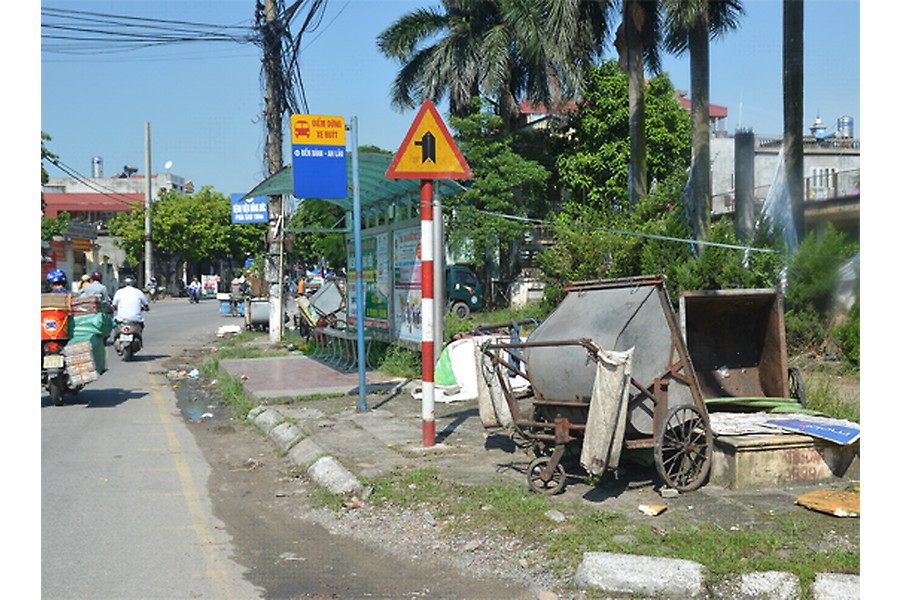 Thực trạng trên cũng diễn ra tại tuyến phố Trần Nhân Tông, Nguyễn Lương Bằng, Trường Chinh… Nhiều tuyến phố dù có vỉa hè, nhưng cũng “hết hạn” sử dụng sau nhiều năm khai thác. Điển hình như phố Hoàng Quốc Việt ở phường Ngọc Sơn, vốn là trục đường giao thông nối cửa ô TâyNamvới khu vực trung tâm thành phố. Thời gian gần đây, nhiều đoạn vỉa hè bị bằm nát, tình trạng vi phạm trật tự đô thị diễn biến phức tạp…