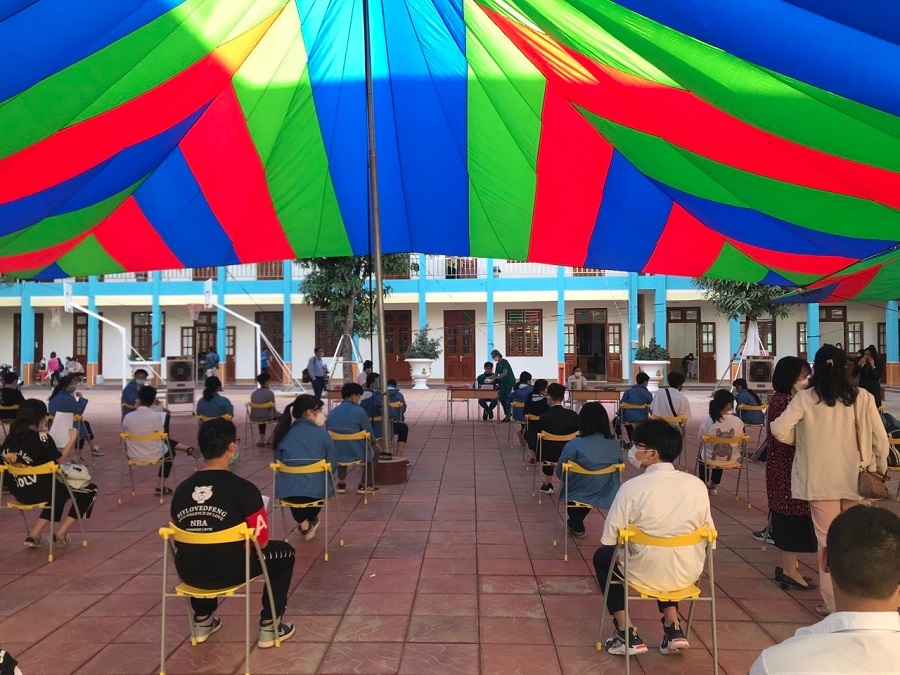 Bên cạnh đó, để đảm bảo giãn cách, học sinh được bố trí tiêm theo từng khối lớp, khung giờ nhất định, tránh tập trung đông người trong quá trình tiêm.