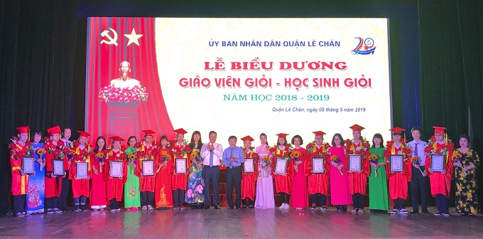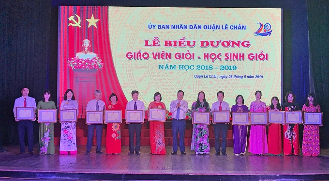Chiều 8/5, UBND quận Lê Chân tổ chức Lễ biểu dương giáo viên giỏi, học sinh giỏi năm học 2018 – 2019. Tới dự buổi lễ có đại diện lãnh đạo các Sở, ngành, đơn vị liên quan; các thầy cô giáo và các em học sinh tiêu biểu thuộc các trường trên địa bàn quận.
