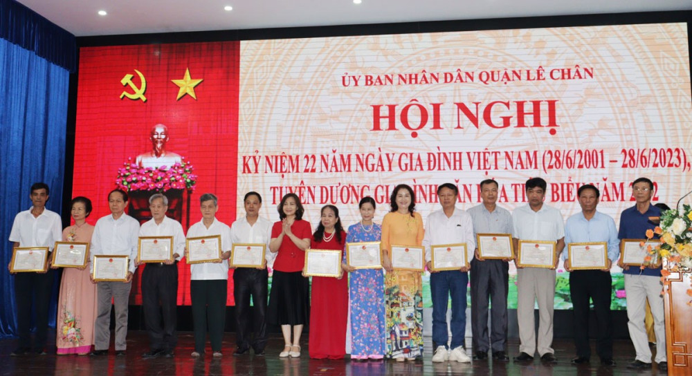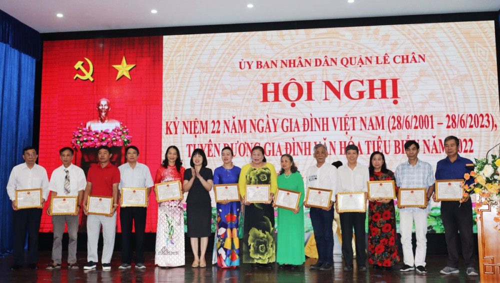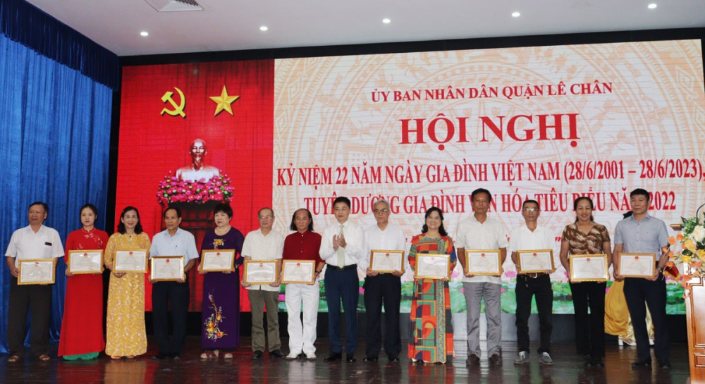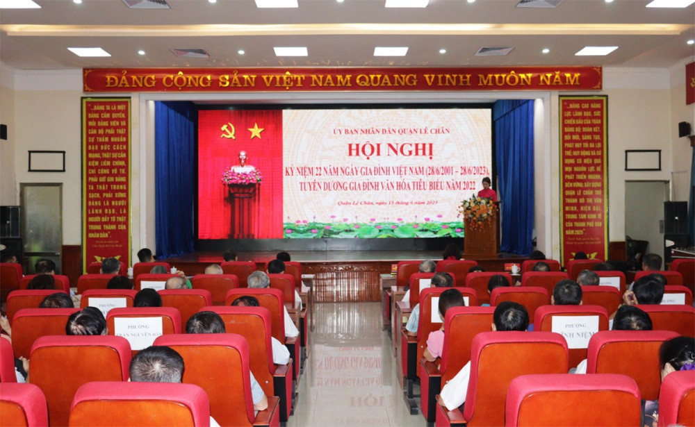 Hướng tới Ngày gia đình Việt Nam 28/6, sáng 15/6, UBND quận Lê Chân, Ban Chỉ đạo phong trào “Toàn dân đoàn kết xây dựng đời sống văn hoá” quận tổ chức Hội nghị Kỷ niệm 22 năm Ngày gia đình Việt Nam (28/6/2001-28/6/2023) và tuyên dương gia đình văn hóa tiêu biểu cấp quận năm 2022.