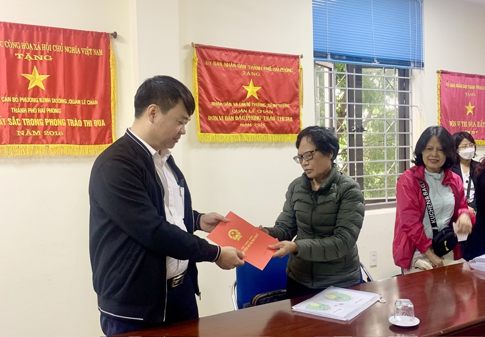 Ngày 1/12, quận Lê Chân tổ chức chi trả tiền bồi thường, hỗ trợ tái định cư cho các hộ dân có đất bị thu hồi để thực hiện Dự án đầu tư xây dựng Trường tiểu học (TH) và Trung học cơ sở (THCS) Kênh Dương, phường Kênh Dương, quận Lê Chân.
