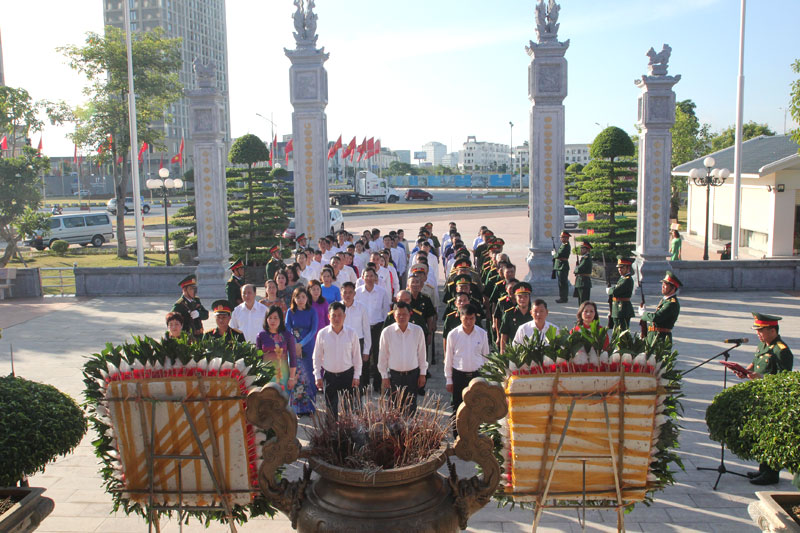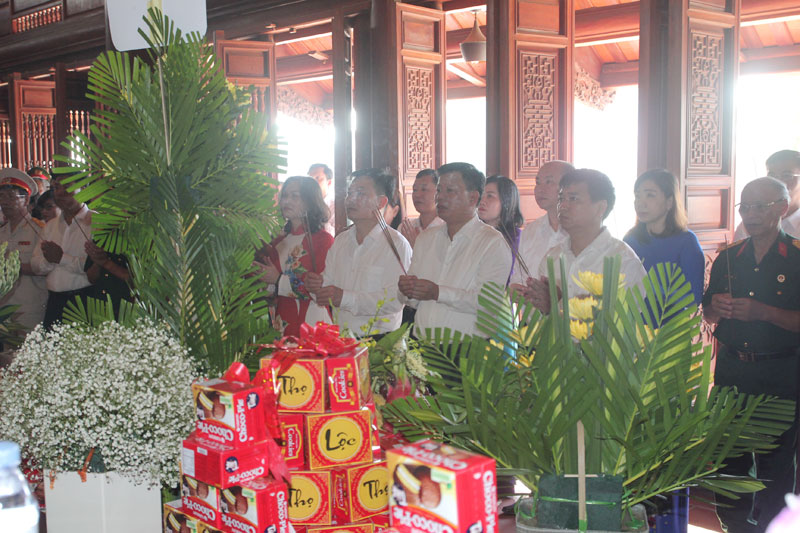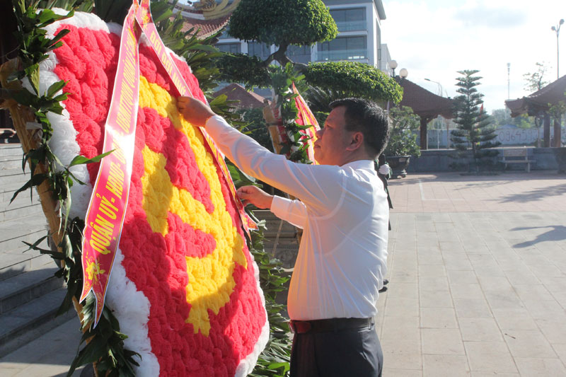 Các đại biểu đã dâng hương, đặt vòng hoa thành kính thắp hương tưởng nhớ các Anh hùng liệt sỹ đã anh dũng hy sinh cho sự nghiệp cách mạng của dân tộc; bày tỏ lòng biết ơn, ghi nhớ công lao to lớn của các anh hùng liệt sỹ đối với đất nước, dân tộc, với Đảng và nhân dân ta.