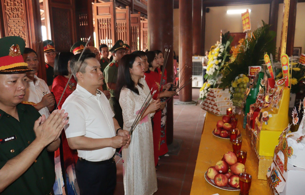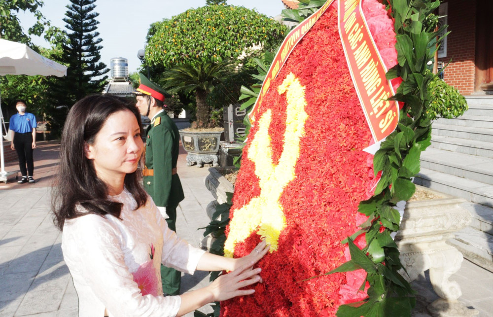 Các đại biểu đã dâng hương, đặt vòng hoa thành kính thắp hương tưởng nhớ các Anh hùng liệt sỹ đã anh dũng hy sinh cho sự nghiệp cách mạng của dân tộc; bày tỏ lòng biết ơn, ghi nhớ công lao to lớn của các Anh hùng liệt sỹ đối với đất nước, dân tộc, với Đảng và Nhân dân.