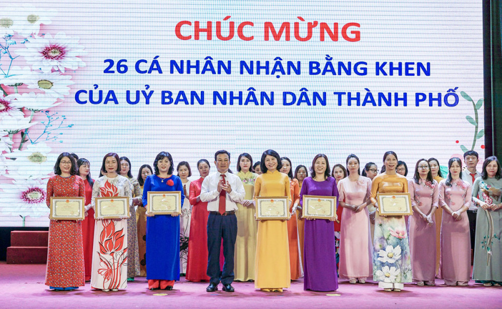 Nhân dịp này, 2 tập thể được nhận Cờ thi đua xuất sắc, 13 tập thể được nhận danh hiệu tập thể lao động xuất sắc của UBND thành phố; UBND quận tặng Giấy khen cho 43 tập thể, 108 cá nhân đã hoàn thành xuất sắc nhiệm vụ năm học 2021-2022; Trao giấy chứng nhận thành tích bồi dưỡng học sinh đạt giải Quốc gia và thành phố cho 52 giáo viên; tặng phần thưởng cho học sinh đạt giải Quốc gia và giải nhất thành phố cho 43 học sinh; biểu dương 17 phụ huynh, học sinh đạt thành tích xuất sắc trong kỳ thi vào lớp 10.