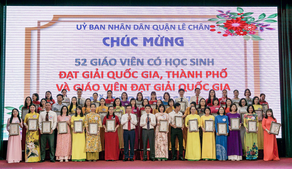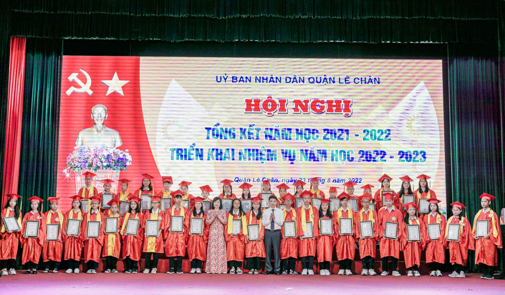 Năm học 2021-2022, ngành Giáo dục và Đào tạo quận Lê Chân đã nỗ lực thực hiện các giải pháp để hoàn thành các nhiệm vụ của năm học và đạt được những kết quả nổi bật: Chất lượng giáo dục toàn diện ở các bậc học được duy trì; cơ sở vật chất đầu tư cho giáo dục được tăng cường; chất lượng đội ngũ nhà giáo và cán bộ quản lý giáo dục được nâng cao, cán bộ, giáo viên đạt chuẩn là 94,81%, trên chuẩn là 29,71%; học sinh giỏi các cấp đạt tỷ lệ cao. Tỷ lệ thi đỗ và chất lượng điểm thi vào lớp 10 THPT công lập được giữ vững, trong đó có 259 học sinh đỗ vào trường THPT chuyên Trần Phú, cao nhất thành phố, tăng 25 học sinh so với năm học trước.