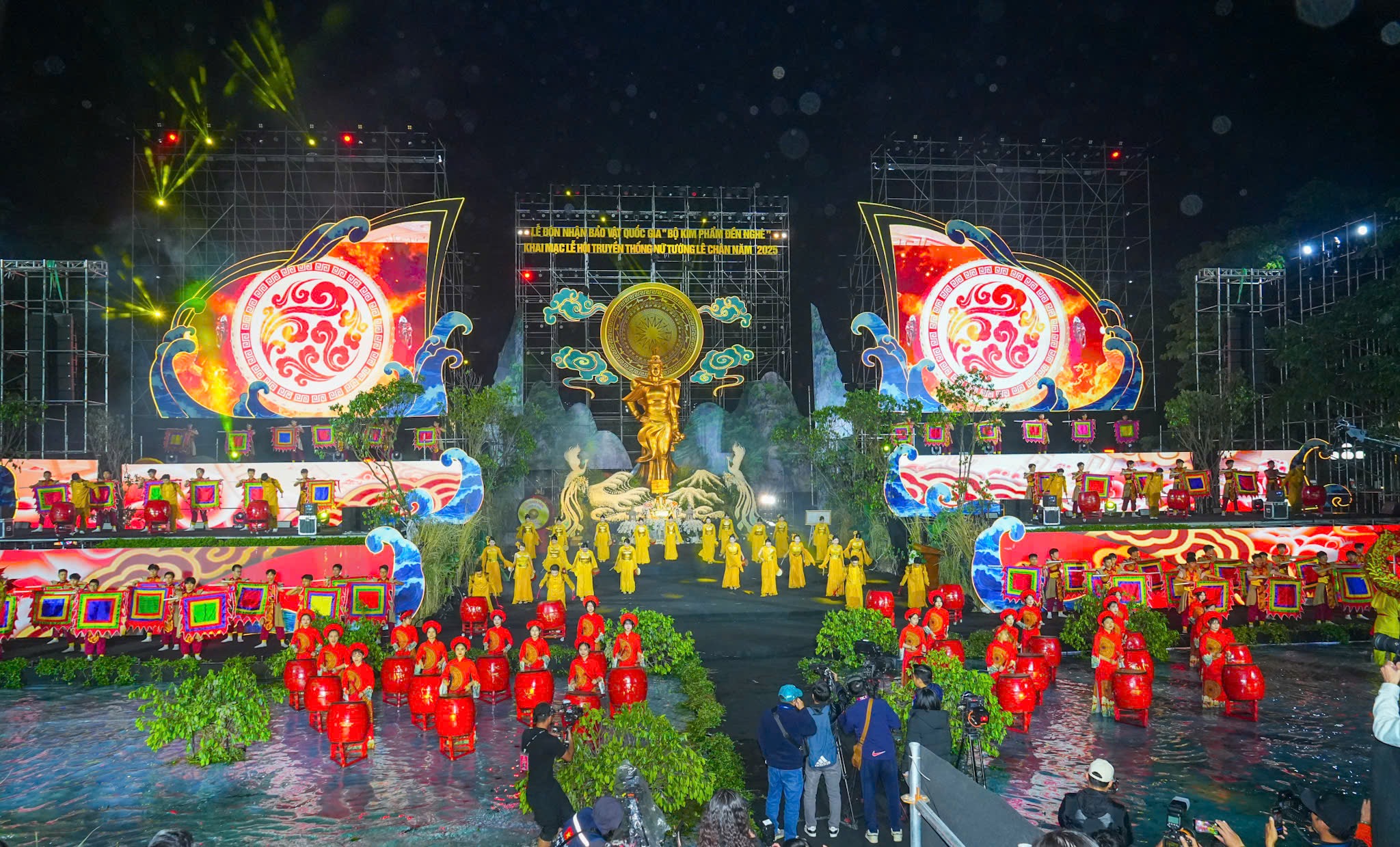 Tối 7/3, tại Quảng trường Tượng đài Nữ tướng Lê Chân, Quận ủy – HĐND – UBND – Ủy ban MTTQ Việt Nam quận Lê Chân long trọng tổ chức Lễ đón nhận Bảo vật quốc gia “Bộ kim phẩm Đền Nghè” – Khai mạc Lễ hội truyền thống Nữ tướng Lê Chân năm 2025.