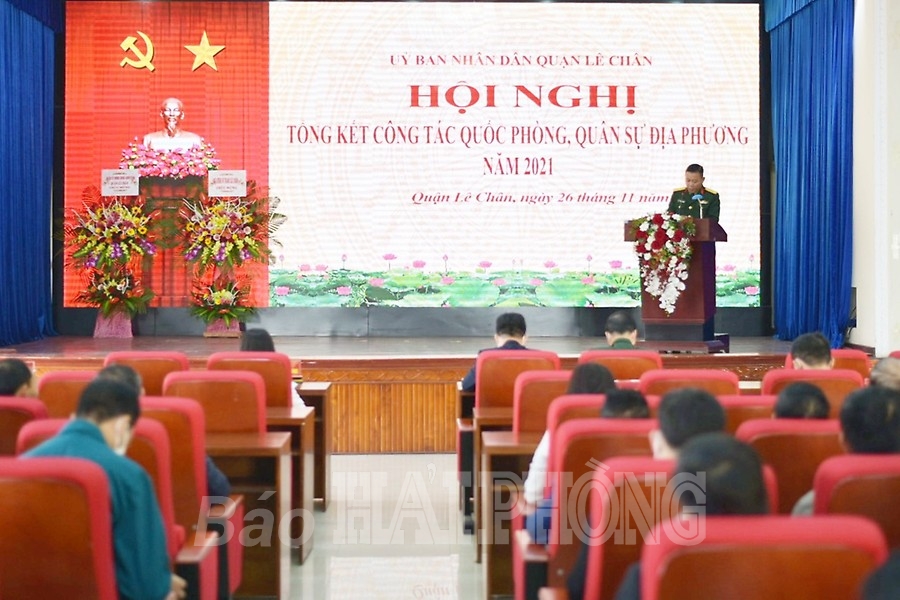 Sáng 26/11, UBND quận Lê Chân tổ chức hội nghị tổng kết công tác quốc phòng, quân sự địa phương năm 2021.