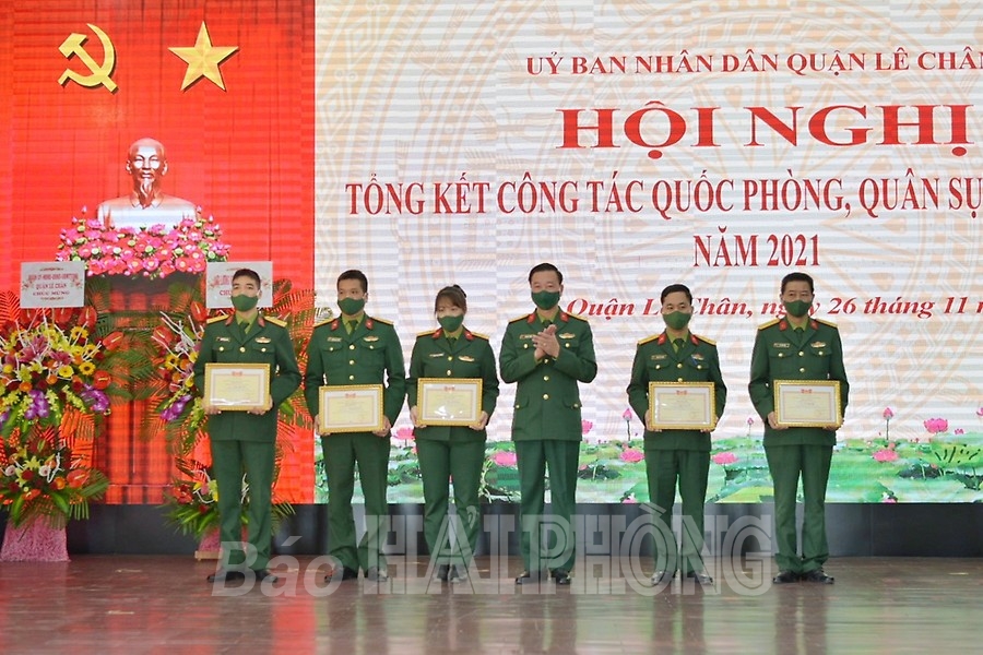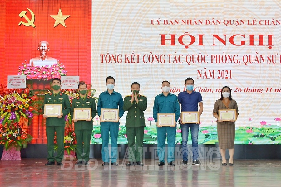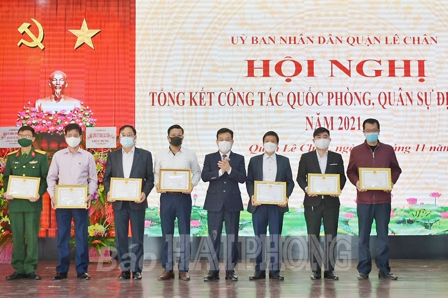 Nhân dịp này, nhiều tập thể, cá nhân có thành tích xuất sắc trong công tác quốc phòng, quân sự địa phương năm 2021 được Bộ Chỉ huy Quân sự thành phố, UBND quận Lê Chân và Ban chỉ huy quân sự quận Lê Chân khen thưởng./.