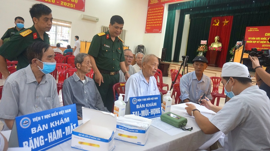 Nhân dịp kỷ niệm 75 năm ngày Thương binh Liệt sỹ (27/7/1947-27/7/2022), sáng 9-7, tại phường Dư Hàng Kênh, Ban Chỉ huy Quân sự quận Lê Chân, Bệnh viện Y học biển Việt Nam, Phòng Lao động, Thương binh và Xã hội quận Lê Chân phối hợp tổ chức chương trình tư vấn sức khỏe, khám bệnh, cấp thuốc miễn phí cho người có công với cách mạng trên địa bàn.