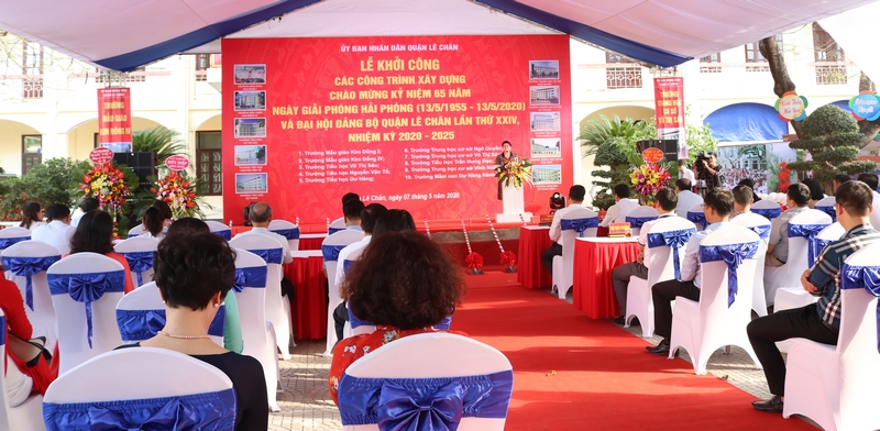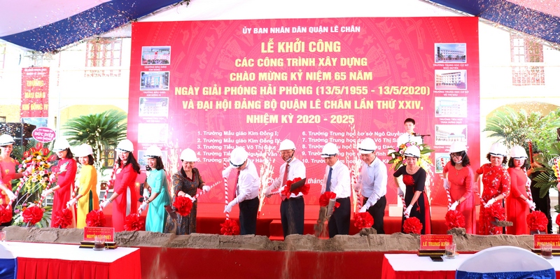 Hướng tới Kỷ niệm 65 năm ngày giải phóng Hải Phòng (13/5/1955- 13/5/2020), chào mừng Đại hội Đảng bộ thành phố lần thứ 16; Đại hội Đảng toàn quốc lần thứ 13 và Đại hội Đảng bộ quận Lê Chân lần thứ XXIV, nhiệm kỳ 2020-2025, chiều 7-5, quận Lê Chân tổ chức Lễ khởi công 10 công trình xây dựng trường học trên địa bàn.
